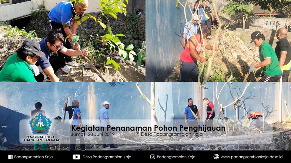 Jumat, 28 Juni 2019 dilaksanakan kegiatan penanaman pohon penghijauan oleh perangkat desa, staf desa, BPD dan tim tanggap lingkungan Desa Padangsambian Kaja berlokasi di sekitar Depo TPSS Jl. Karang Sari I dan pinggiran Pangkung Batu Jineng yang bermuara ke Tukad Mati.