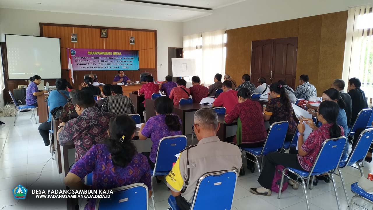 Pada Musdes kali ini, membahas tentang “Rancangan Perdes Keterwakilan Wilayah Keterwakilan Perempuan, Persyaratan Anggota dan Tata Cara Pengisian BPD Padangsambian Kaja 2019 - 2025”