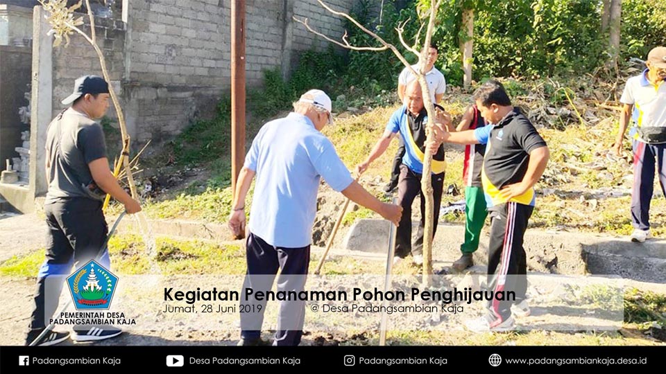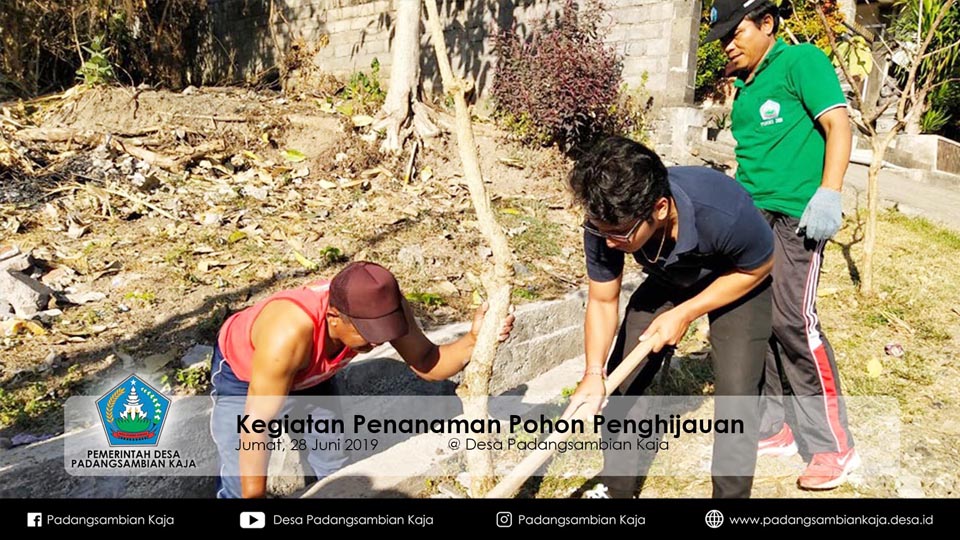 Jumat, 28 Juni 2019 dilaksanakan kegiatan penanaman pohon penghijauan oleh perangkat desa, staf desa, BPD dan tim tanggap lingkungan Desa Padangsambian Kaja berlokasi di sekitar Depo TPSS Jl. Karang Sari I dan pinggiran Pangkung Batu Jineng yang bermuara ke Tukad Mati.