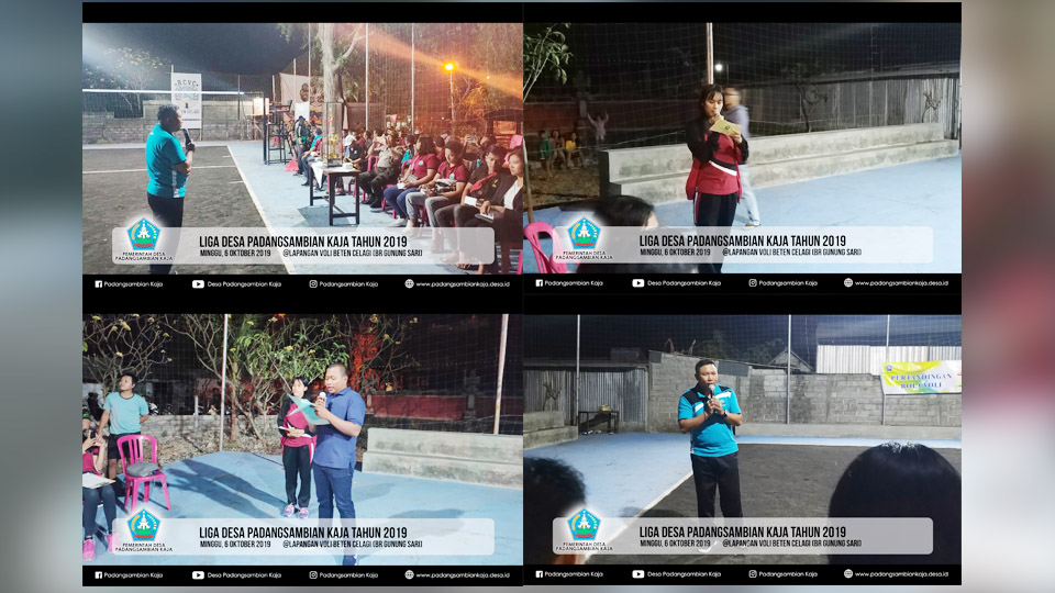 Liga Desa Padangsambian Kaja Tahun 2019 secara resmi telah dibuka oleh Plt. Perbekel Padangsambian Kaja pada Minggu, 06/10/2019 di Lapangan Bola Voli Beten Celagi. Kegiatan ini termasuk salah satu Inovasi Desa dan telah masuk pada salah satu menu Bursa Inovasi Desa di Bali. Pada hari pertama dipertandingkan cabang Karate, Tenis Meja dan Bola Voli. Semangat ! Tetap jaga disiplin dan sportivitas.